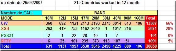 ![]() Lundi 27 Août 2007 Jean Luc a terminé son activité radio depuis la Côte d'Ivoire comme prévu ce 25 août, Pour résumer rapidement cette activité: Le premier QSO a été établi le 05 septembre 2006 à 18h01 avec RK6FZ sur 17m en CW. Aprés presque 12 mois, le log totalise 20650 QSO. Le dernier QSO étant RU9CD sur 40m SSB. Au retour de Jean Luc, prévu le 12 septembre, nous verrons pour faire un résumé photo complet de son périple. Merci à tous pour ces nombreux QSO. "Il y a un peu de retard dans les retours QSL, surtout via bureau, mais soyez patient, le traitement est en cours... A ce jour, ce sont prêt de 2500 QSL qui sont arrivées pour environ 2000 traitées. -Août 2010, ce sont prêt de 14 000 QSL qui sont arrivées environ 60% par bureau toutes ont été traitées. merci à tous d'avoir été patient. Statistiques des QSO pour l'activité TU2/F5LDY ![]() ![]() ![]() Jeudi 14 Décembre 2006 Un petit bonjour de Côte d'Ivoire ou tout se passe à merveille, Je viens d'atteindre les 10.000 QSO ce jour. Je ne serais pas actif entre le 29 décembre 2006 et le 15 janvier 2007, Je serais en France durant cette période. A mon retour ici en TU2, j'installerais une nouvelle antenne qui me permettra d'être QRV dans de meilleures conditions, surtout sur le 160m. Je devrais également enfin être actif dans les modes digitaux pour la nouvelle année. En attendant ce moment, je vous souhaite à tous de très bonnes fêtes de fin d'année. A bientôt sur l'air. Mercredi 13 Décembre 2006 Quelques photos du QTH de Jean Luc, d'autres sont également visibles. ![]() ![]() ![]() Vendredi 06 octobre 2006 Jean à enfin sa conection internet, donc les logs devraient être à jour un peu plus régulièrement. Voici çi-dessous quelques clichés de la région ou il se trouve. ![]() Mercredi 27 septembre 2006 Jean n'a toujours pas de connection internet permanente à ce jour, Donc soyez patient pour le log en ligne... Je demande aux stations d'être disciplinés, de ne pas "appeler " lorsque je suis en train de prendre une station et ce surtout pour les stations japonaises, qui sont très nombreuses et qui sont particulièrement indisciplinées. Il faut écouter et attendre mon " TO ou UP " avant de transmettre. Soyez patient que je suis en TU2 pour 1 an, Vous aurez bien l'occasion de me contacter. Pour l'instant j'ai activé toutes les bandes du 160 (1 seul qso ) au 10 m en CW et SSB. Je vais prochainement faire un peu de RTTY et autres digimodes. 73 QRO à tous jean luc TU2/F5LDY ![]() ![]() Lundi 11 septembre Reçu ce matin les photos de son installation... ![]() ![]() Dimanche 10 septembre J'ai reçu des nouvelles de notre ami Jean Luc, Le voyage s'est bien passé, et sa station est opérationnelle. Pour le log et les photos, il faudra patienter une dizaine de jours, car sa conection internet n'est pas encore prête. Côté trafic, tout va pour le mieux, avec à ce jour quelques 790 QSO répartis sur 63 DXCC ( Pays ). Voilà pour l'instant. Jean Luc à quitté Paris le lundi 4 septembre Après mon premier QSY africain en république de Djibouti en 2000, ou j'étais J28EW, mon second se fera à partir de septembre 2006 jusqu'en Aôut 2007 en République de Côte d'Ivoire. Les autorités ivoirienne n'attribuent pas d'indicatif TU pour les séjour inférieur à 2 ans, ils m'ont quand même autorisé à trafiquer avec le call TU2/F5LDY. Ma station se composera d'un FT1000 MP micro MD100, keyer MFJ 407D + clef G4ZPY. Pour les aériens, une verticale cuschcraft R7, une G5RV full size, et un long fil pour le 160 m. Voici les fréquences que j'activerai si la propagation et le QRL pro le permettent. 160 m - 1818 - 1848 80 m - 3508 - 3748 40 m - 7008 - 7048 30 m - 10108 20 m - 14008 - 14148 17 m - 18078 - 18148 15 m - 21008 - 21248 12 m - 24908 - 24948 10 m - 28008 - 28448 Je ne serai pas QRV sur 6 m. Ayant une interface made in F5KEE, je serais de temps en temps QRV en mode digitaux. Sur cette page, vous pourrez suivre au fil de l'eau le log informatique ainsi que quelques photos et historique de mon séjour. Voir aussi le log sur le liens suivant: 73 les plus QRO. Jean luc F5LDY ![]() Date de création : 14/03/2010 @ 18h33