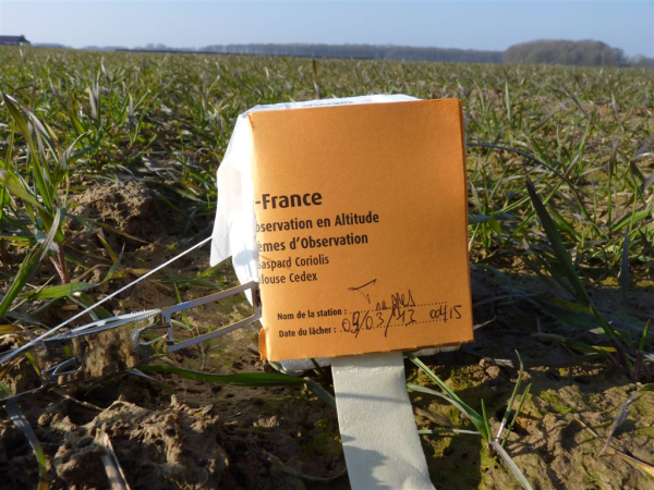 Oms : F1NVW - F4CQA Heure : 15.14h, heure de la sonde trouvée Coordonnées : 48.62221 2.58795 Ville : 77550 Moissy Cramayel Fréquence : RS de Trappes 12.00z, 402.000 MHz Altitude d'éclatement : 27296 m Avant de rentrer, une petit crochet (sur les coordonnées de Michel F6GVH) vers la RS de 00.00h Elle est là, elle cri-critte en plein champ. Une petite marche dans la terre bien meuble et nous voilà auprès d’elle.