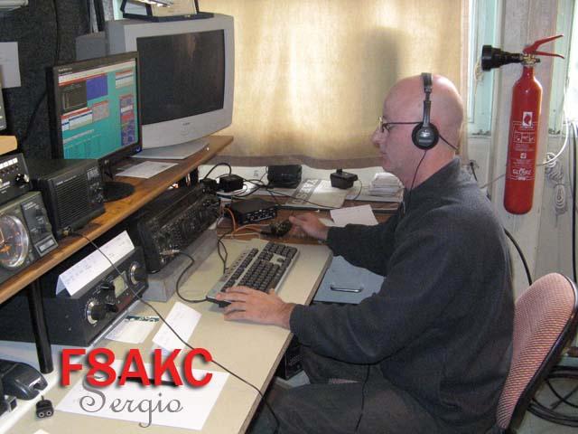 ...avec pour commencer, l'habituelle coupe du REF CW. Une pensée aux copains du sud ouest, avec beaucoup d'absent cette année pour cause de tempête, en espérant qu'ils n'aient pas trop subit de dégats ! Voici comme chaque fois, un petit résumé de notre week end radio à KEE. Contrairement à de nombreux radio club, la partie CW n'a pas manqué d'opérateurs en 2009, L'équipe était composée pour cette première manche du championnat de France, de notre vétéran ( fraichement retraité HI ) Jean Luc, F5LDY et de Serge, F8AKC en QSY sur le 91. Ce sont eux qui ont assuré le trafic de jour, en partie. Pour le trafic nocturne, un petit nouveau a fait son apparition à KEE, il s'agit de Christian, F5MBF qui s'est parfaitement intégré au groupe, en binôme avec Fabrice, F1CGN. Christophe, F4CQA était également de la partie. Comme lors de chaque contest, nous nous sommes retrouvés le vendredi soir pour préparer la station, mais surtout pour ranger la salle 'bidouille' qui en avait besoin... Il faut reconnaitre que le radio club commence à devenir étroit pour accueillir toutes nos activités ;o) De ce fait, nous devons presque pousser les murs pour installer four et autre plaque chauffante. Le reste se fera durant le week end avec la participation d' Eric, F5TKA et Jean Claude 1er notre SWL de compétition HI ![]() F8AKC,Très concentré...